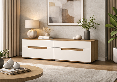 Тумба Анри под телевизор с выдвижными ящиками Швейцарский вяз, Белый
