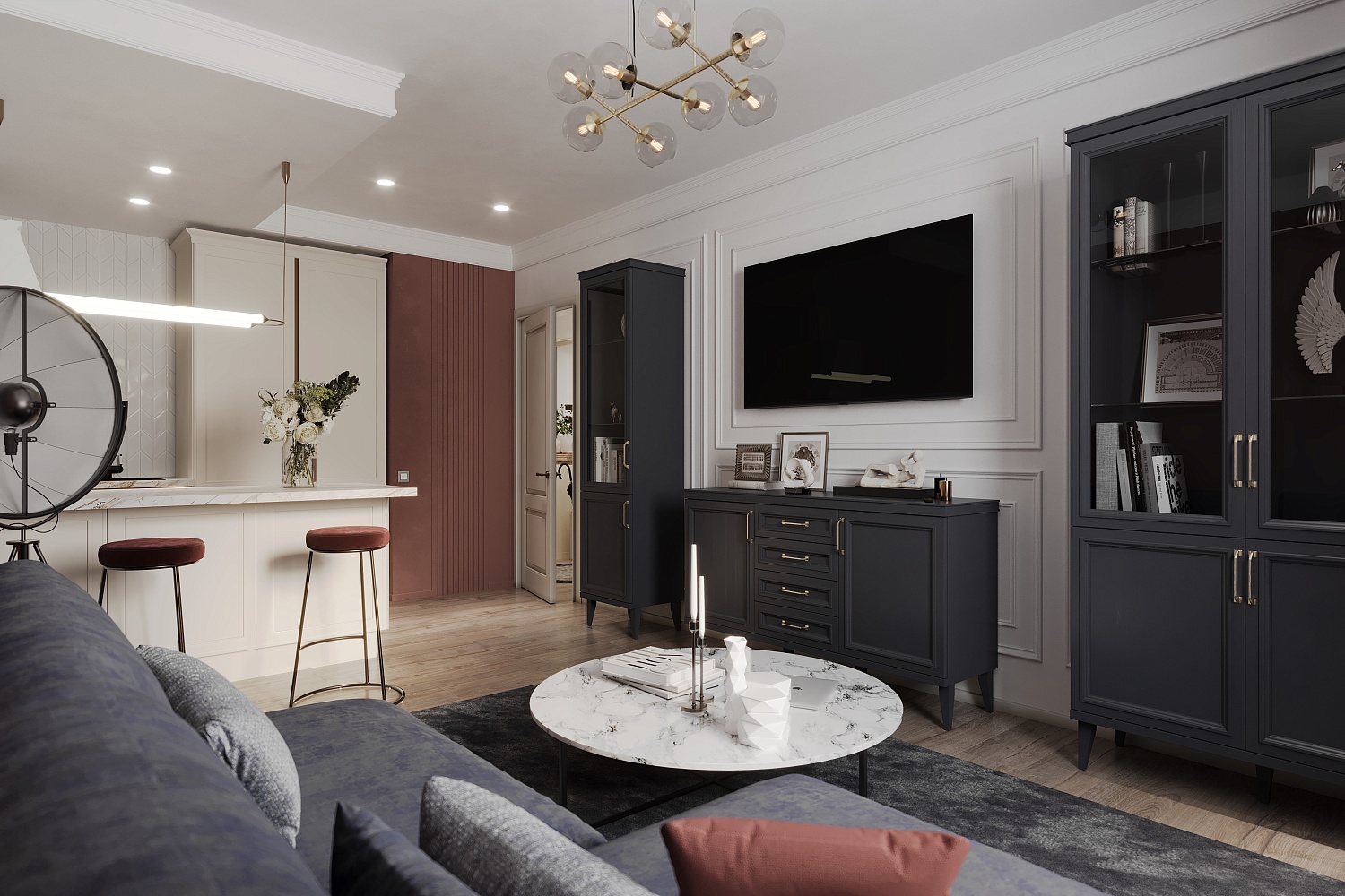 - Шкафы укомплектованы полками ЛДСП за глухими фасадами и стеклополками за стеклянными фасадами;