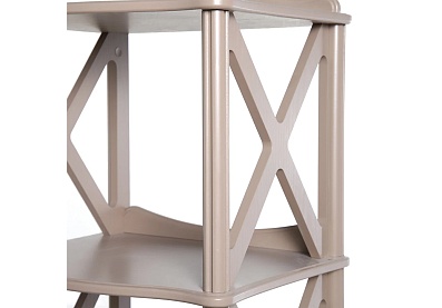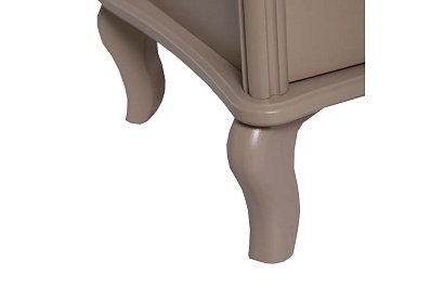 Узкий консольный столик «Джульетта» в цвете мокко предназначен для декоративных целей — на небольшую поверхность можно поместить вазу, сувенир, необычную статуэтку. Внешний вид изделия соответствует интерьерному стилю прованс. Бежевый оттенок, фигурная форма, изогнутые ножки, фурнитура в цвете «античная бронза» превосходно впишутся и в классическую обстановку. Основание модели выполнено из МДФ, боковины и столешница — из ЛМДФ, прочие детали изготовлены из шпона натурального ясеня. Изюминка консоли — боковые части в виде декоративных элементов фахверков. В компактном ящике с бесшумным механизмом выдвижения можно хранить любимые книги, косметику, украшения, очки, различные мелочи.