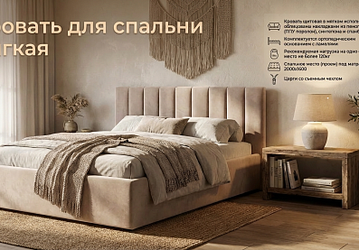 Двуспальная кровать Агата создана для тех, кто ценит спокойный сон, лаконичный дизайн и ощущение уюта в спальне.